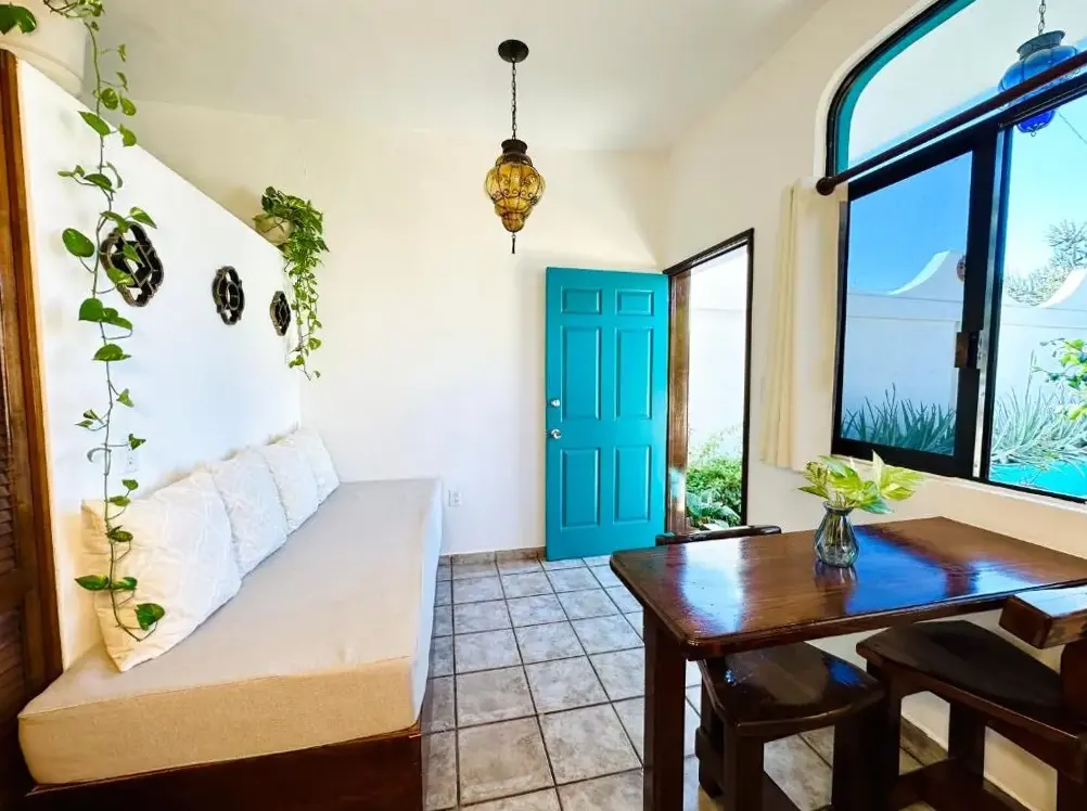Cabo Bohemia Tropical Garden Studios se encuentra situado en 6 Revolución de 1910, 23470 Cabo San Lucas, México. Este alojamiento ofrece estacionamiento gratuito y habitaciones no fumadoras equipadas con conexión WiFi gratuita. Ubicado cerca de playas populares como Medano Beach a 950 metros y Solmar Beach a 1.6 kilómetros, también está próximo al Restauran La Patrona a 150 metros y a Lapá Lapá a 100 metros. Los huéspedes pueden disfrutar de un entorno tranquilo y cómodo, ideal para descansar tras explorar los lugares cercanos como Parque de Lomas del Faro a 2.2 kilómetros o Caribe a 5 kilómetros.